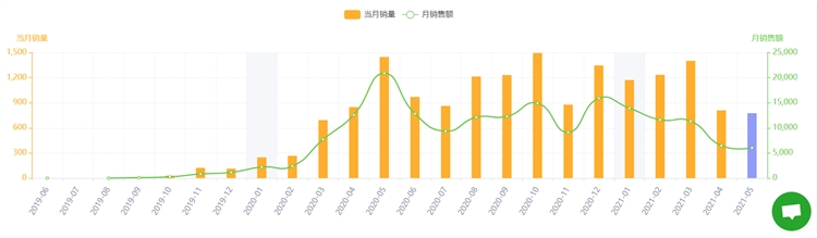 拉链式切片机有多香,试试就知道。这款产品具有类似凿子的结构和隐藏式刀片,能为自炊小白省去不少麻烦事,该产品一夜爆火也跟TikTok脱不了干系(此处@FreakinReviews),从图中也能看出,这款产品的销量与该视频爆火的周期一致持平,可能目前来说销量走低卖家不会将其纳入选品考核的范围,但重点关注厨卫类产品的思路总是值得借鉴。