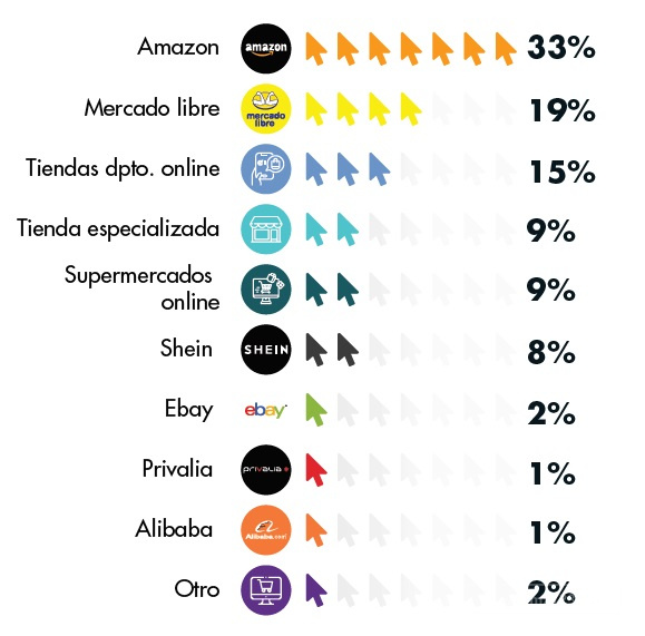 在网购渠道方面,33%的消费者首选亚马逊;其次是Mercado Libre,占19%;网上百货公司(15%)和专业商店(9%)紧随其后。