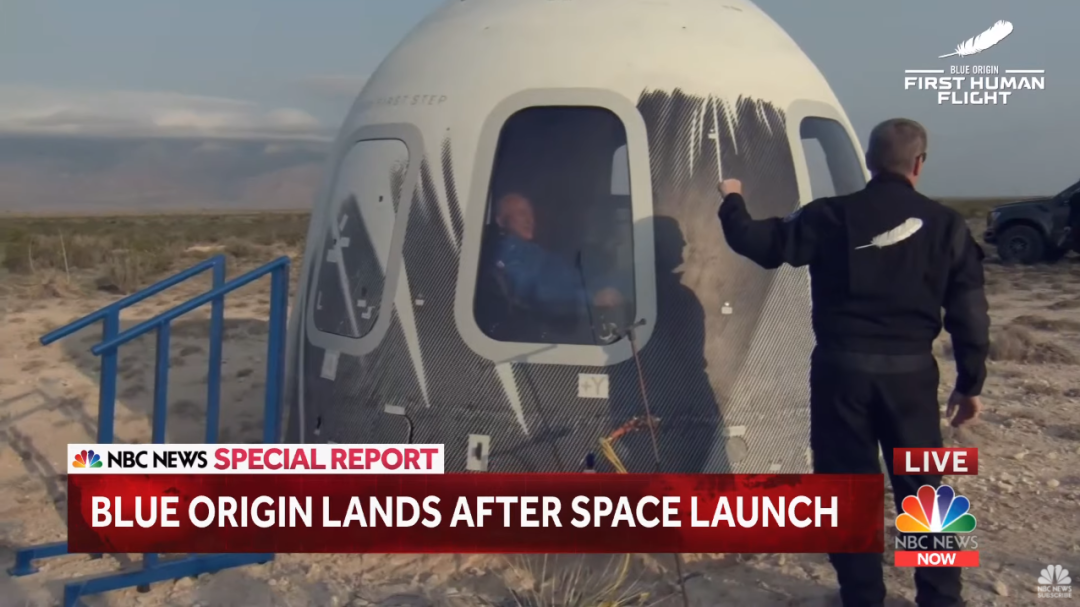 贝索斯搭乘返回舱安全着陆地球 视频截图