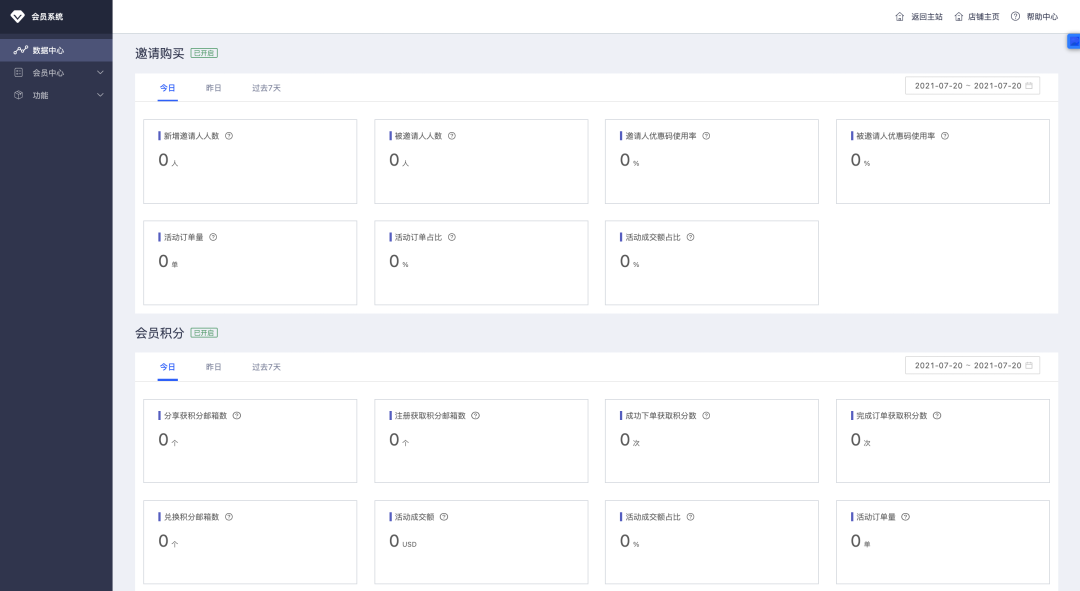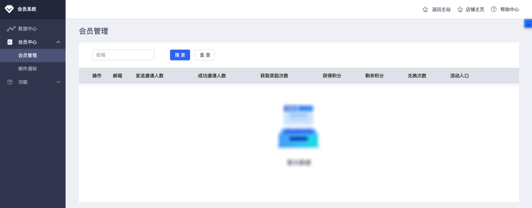 会员系统应用详解1. 会员中心1)会员管理【会员管理】板块,用户在店铺前端页面通过会员系统入口注册成功后的信息会在这个页面展示,包括留下邮箱的新会员信息。通过点击查看详情,可以浏览会员的优惠码状态,以及会员的奖励总次数、积分,及时获取会员的消费情况,抓住用户心理,适时发起会员活动,鼓励会员拉新、推广并给予奖励。通过汇集会员邮箱和偏好信息,单独面向会员编辑会员专属邮件通知和邀请。