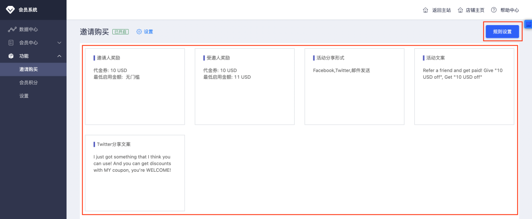 - 邀请邮件:给参与邀请购买活动发送好友邀请邮件的店铺会员提供默认邀请文案,此邀请文案支持会员在线编辑更改;