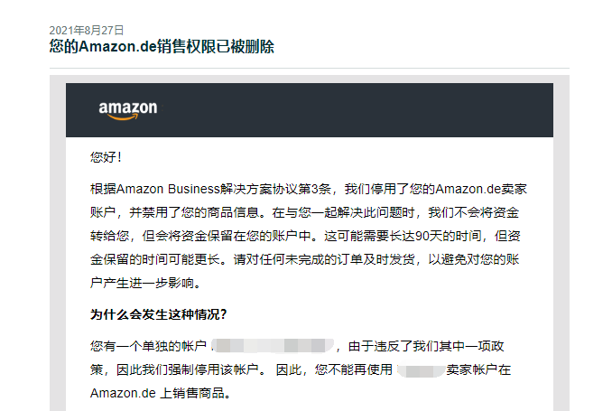 被关店的时候都会先收到一条亚马逊通知,禁用了我们的销售权限