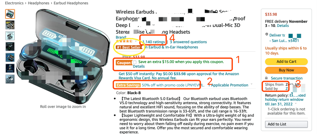 1. 产品的常规售价为33.98刀,页面上有一个15刀的coupon,还有一个50%的折扣码,也就是说,消费者购买的时候,不含税价支付2刀都不到!
