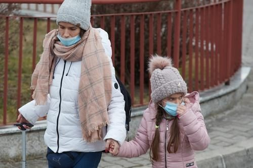 一对匆忙赶路的母女