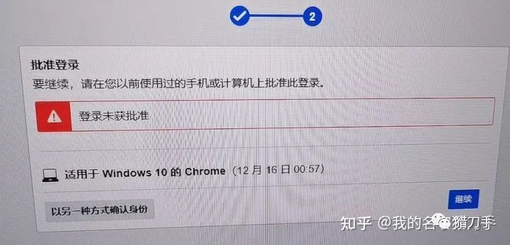 2、那么这一类型的Facebook账号。提示你需要在另外的手机或者电脑上批准,这次的登录原因非常简单,就是之前这个Facebook账号可能是登录在某一个设备上面,然后进行了认定。请注意,这个认定并不是自己用户自己的行为,有可能是facebook认定了,这个设备和这个账号关联度比较高。