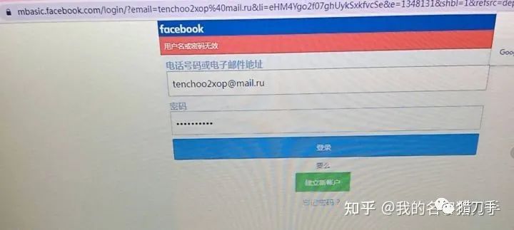 3、碰到了Facebook账号和密码无效的情况,这个要分为两种情况来判断。那么第1种情况就是本身的账号密码确实错了。那这个没有任何假头,这个账号直接就pass掉了。那么这当中还会有第2种情况。其实这是一种Facebook的认证方式。这个账号密码本身也没有错。我们只需要选择忘记密码。