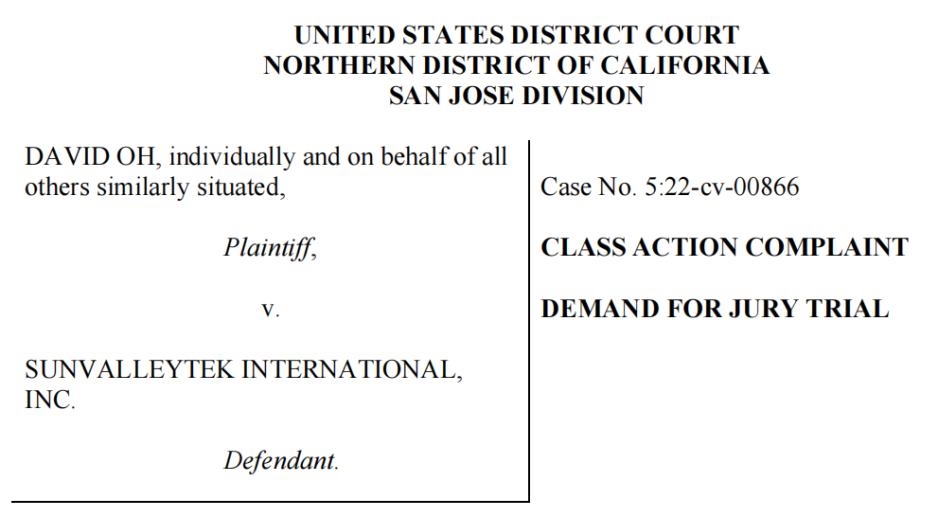 该集体诉讼案件的代表人David表示,自己曾于2019年在亚马逊上购买过泽宝旗下品牌Taotronics的电视音响、电脑音响、加湿器等产品。