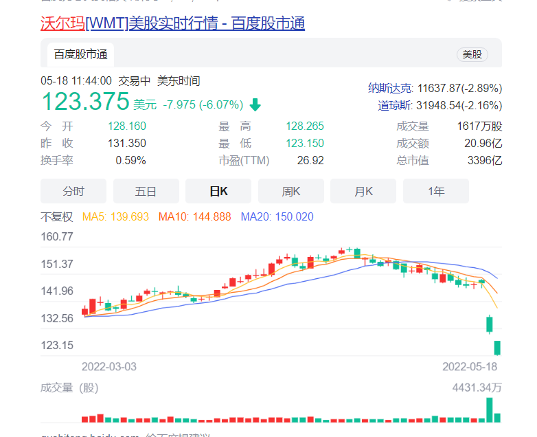 我早在之前文章就告诉大家,美国正在经历2008年以来最大的衰退!亚马逊5.18号,最新股价2183美元,跌回了2020年2.20美国疫情前,几乎抹掉了疫情期间的全部涨幅。亚马逊这个巨头都这样,沃尔玛已经算是抗打的。