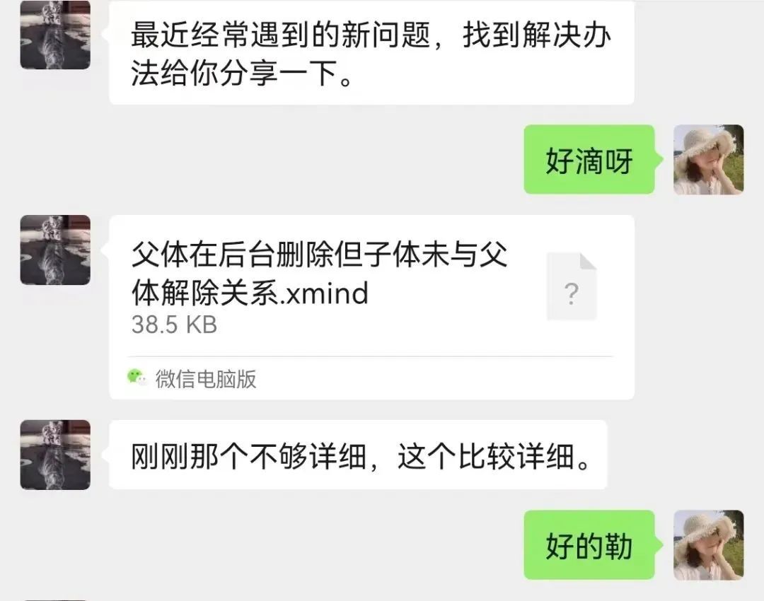问题是: 父体在后台删除,但子体未与父体解除关系。