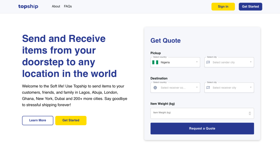 图片由企业官方提供非洲企业在国际航运方面面临诸多挑战,例如过高的物流成本和过海关时的隐性费用。为了解决这些供应链问题,非洲的数字化货运代理行业不断壮大。成立于2020年的「Topship」正是其中的一员。据联合创始人兼首席执行官Moses Enenwali介绍,该公司的创业想法来源于"日益激增的将包裹和货物运往尼日利亚境外的需求"。该公司于物流公司「ACE Logistics」、电子商务支持企业「Sendbox」建立了合作关系。Enenwali表示:"尽管受到疫情影响,各国开始严格限制海关流入,但我们发现全球市场对.............