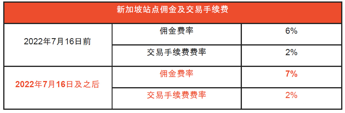 为了在未来能够给您持续提供更优质的服务和资源,Shopee对佣金政策做了部分调整,调整将于2022年7月16日正式生效,新加坡站点生成的订单平台佣金费率将调整为7%,其交易手续费率不变。
