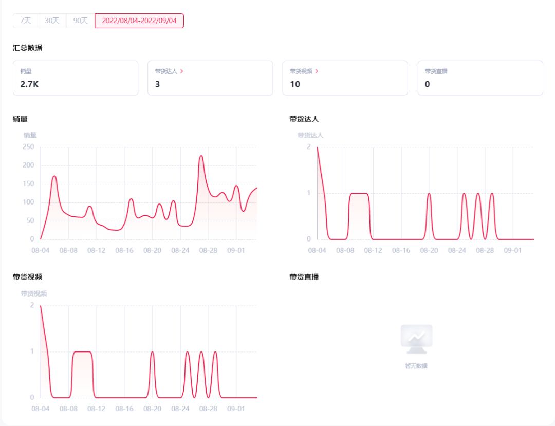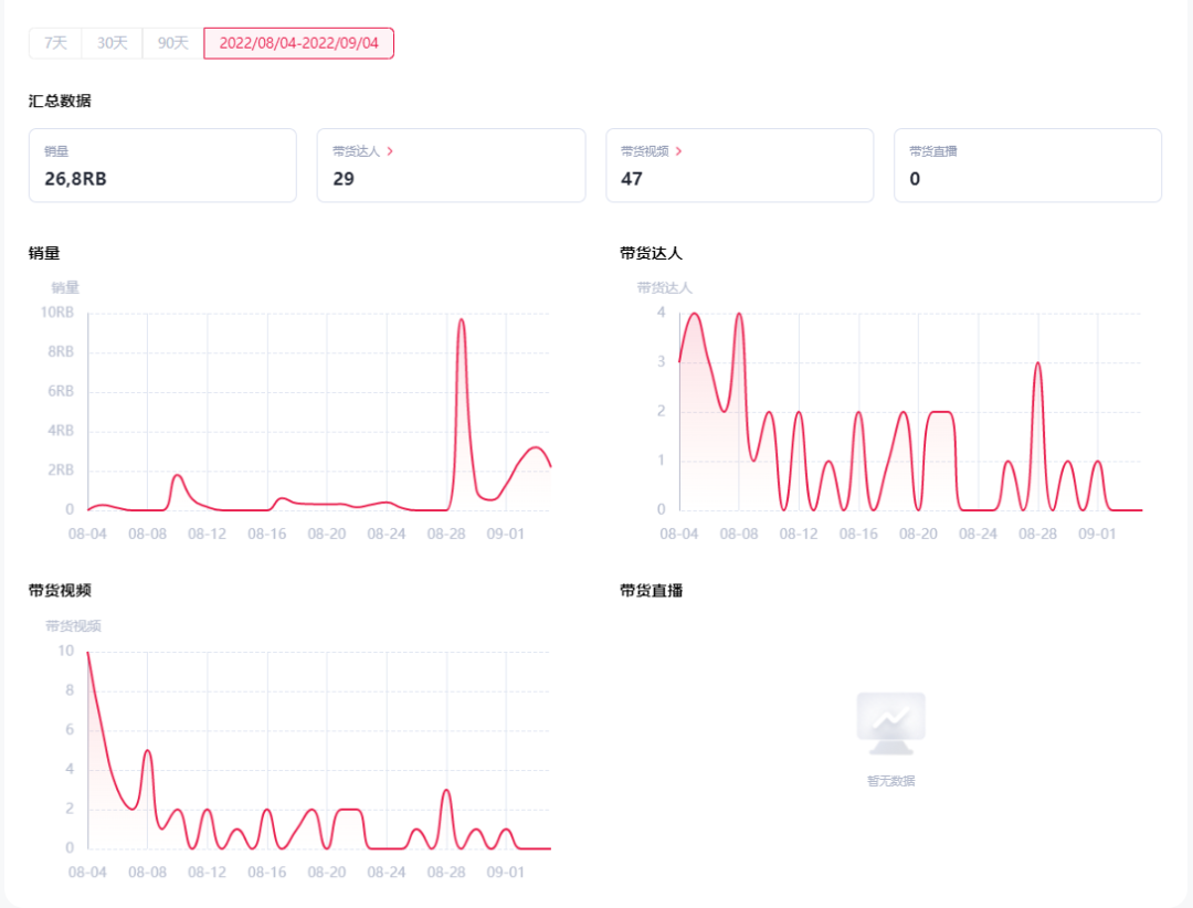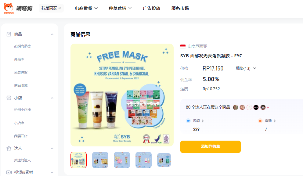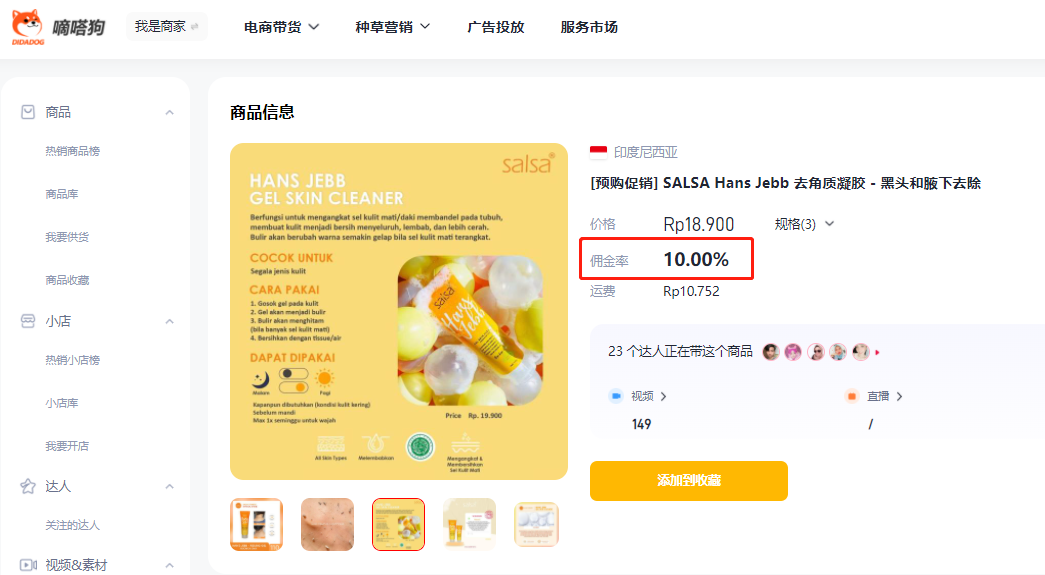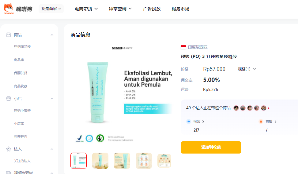 这款去角质凝胶的佣金率达到了10%,高佣金率吸引了大量的带货达人,通过嘀嗒狗数据可发现,在过去的一个月共有29位达人进行了带货,视频播放量达到了72000。![]()