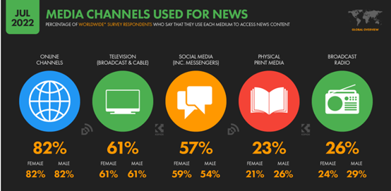 社交媒体是最重要的新闻来源 ,路透社研究所的数字新闻报告更惊人的发现是,人们现在转向社交媒体获取新闻的可能性是转向纸质报纸和杂志的2.5倍。