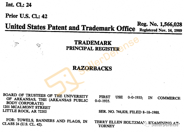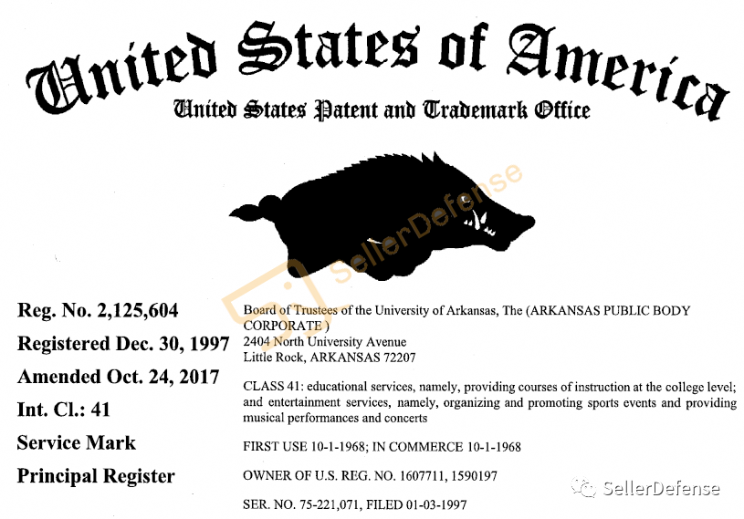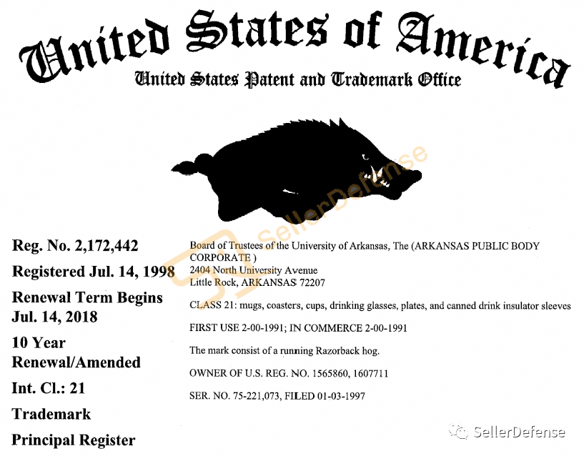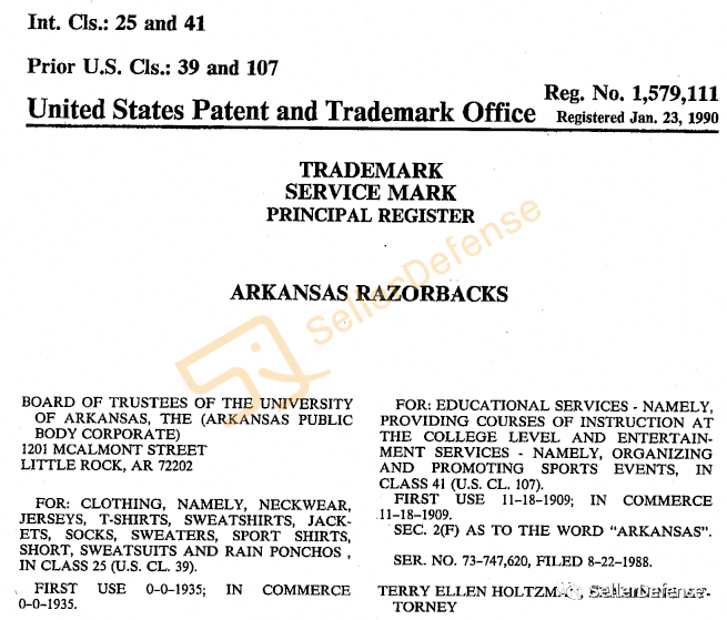 品牌方:Board of Trustees of the University of Arkansas, a Body Politic and Corporate