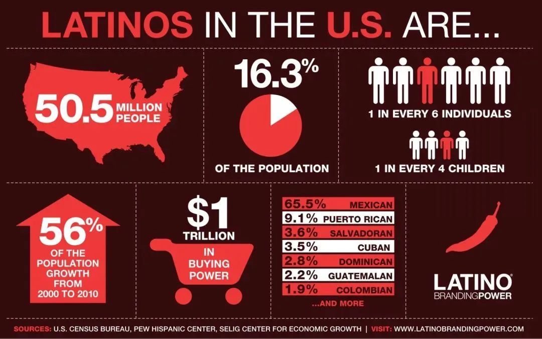 你或许以为这个文化月与中国品牌并无关系,但实际上美国的西班牙裔/拉丁裔占到总人口的16%,是美国最大的少数族裔群体,也就是说对于想要进入美国市场的品牌而言,你的消费者中可能就有该群体人士。你必须考虑的3个因素