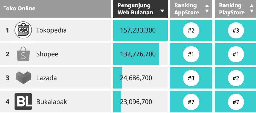 访问量数据直接反映了 Lazada 在印尼消费者和卖家心目中的地位。