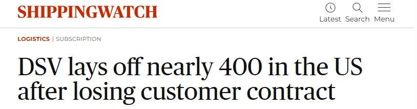 在全球供应链需求波动与客户结构调整背景下,丹麦物流巨头DSV再次收缩美国业务版图。最新消息显示,公司将在德克萨斯州裁员近400人,并关闭一处关键物流设施。据行业媒体ShippingWatch报道,DS